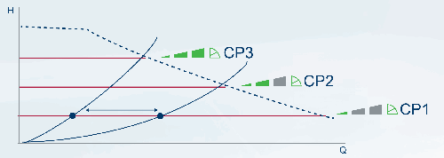 Для режима постоянного давления также свойственны три варианта рабочих характеристик (CP1, CP2,