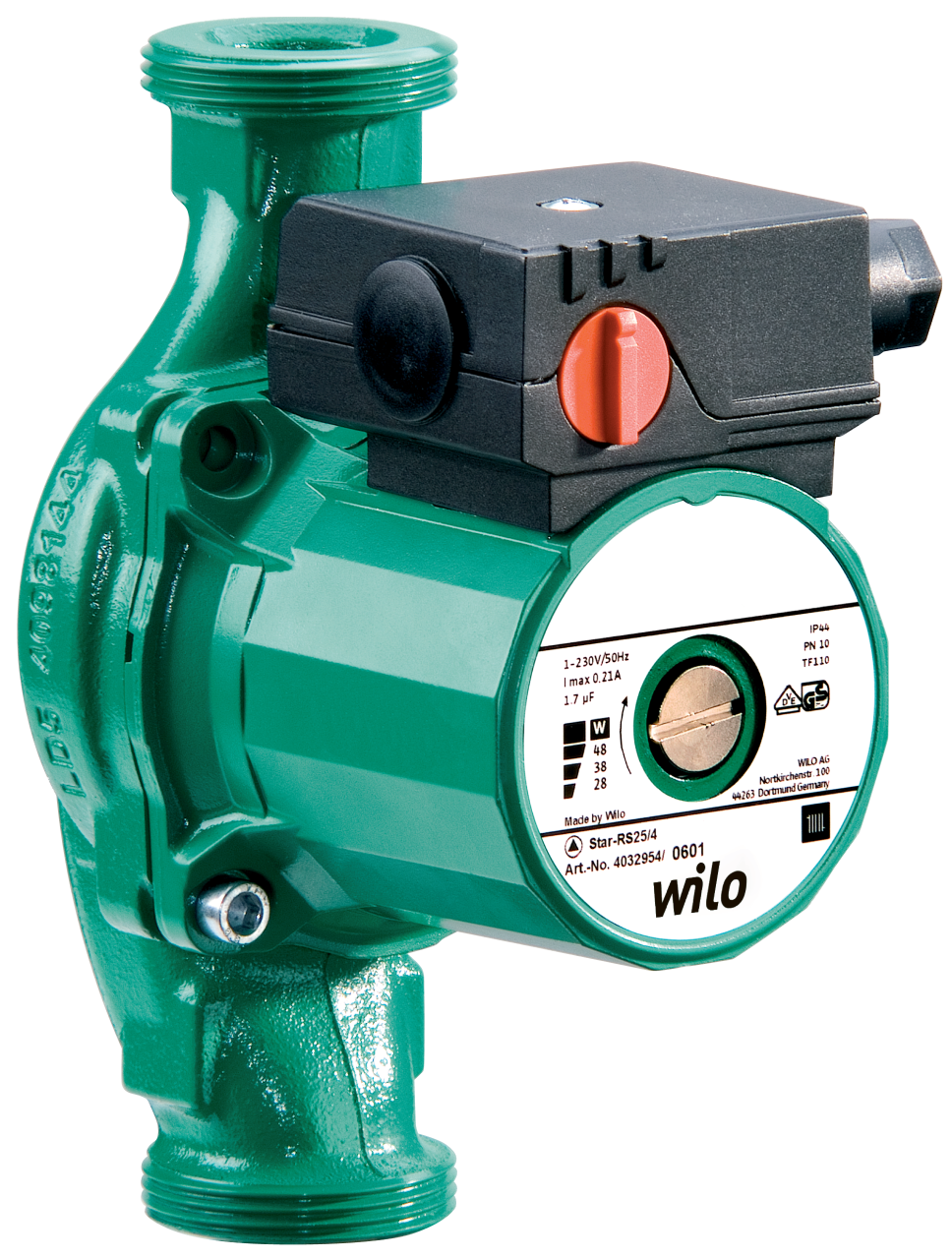 Циркуляционный насос с мокрым ротором и резьбовым соединением. Трехскоростной. Отлично работают с газовыми и твердотопливными котлами всех типов и марок. Невысокая цена и надежная конструкция обусловили их применение на объектах в Республике Беларусь. Часто используются в частных домах в качестве дополнительного насоса для усиления циркуляции теплоносителя к газовым и твердотопливным котлам.