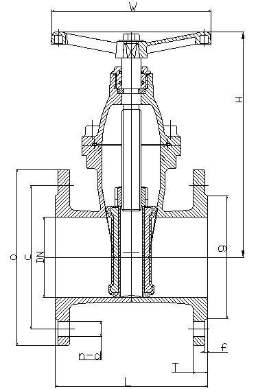 Чертеж габаритный задвижки чугунные клиновой с обрезиненным клином и невыдвижным штоком ABRA A40-10: