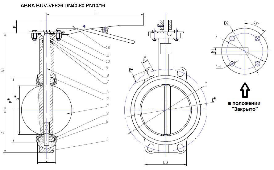 Затвор поворотный дисковый ABRA BUV-VF826D межфланцевый